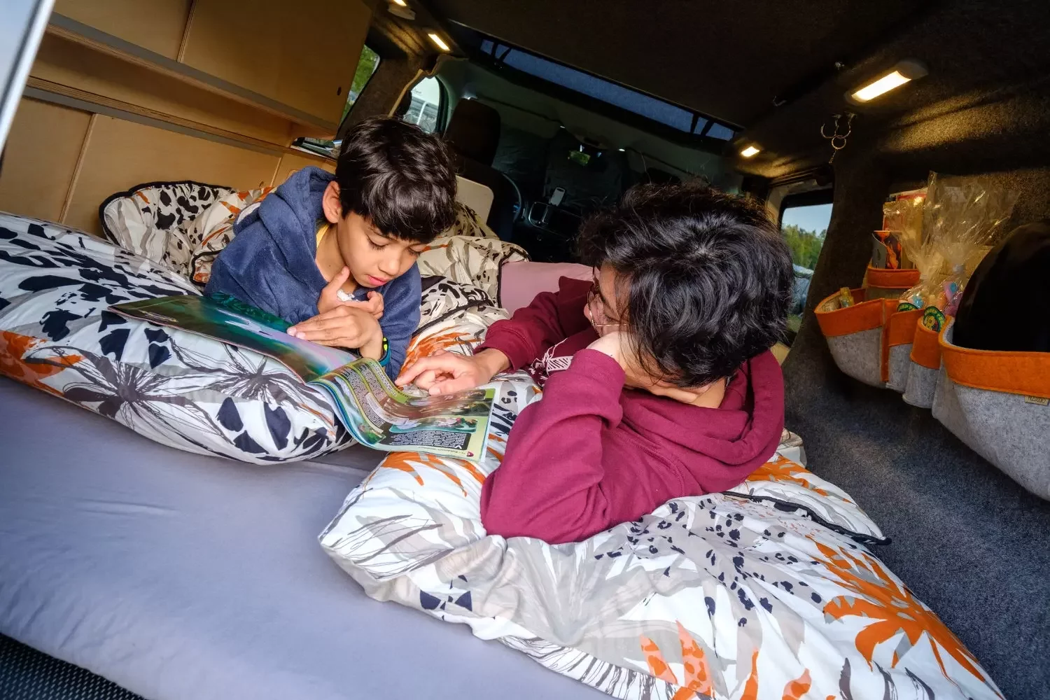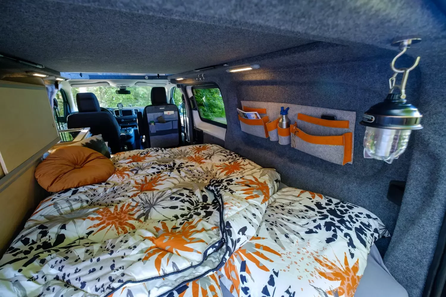 In het interieur is rekening gehouden met al je opbergbehoeften. Of het nu gaat om kleding, kampeerspullen of persoonlijke bezittingen, er is opbergruimte te vinden onder de slaapbank, tussen de voorstoelen en in de zijwanden van de camper. Aan bergruimte geen gebrek, zodat je alles netjes en georganiseerd kunt houden tijdens je reis.